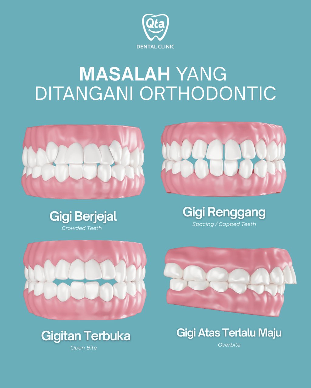 Di QTA Orthodontic & Dental Care, perawatan kawat gigi dilakukan langsung oleh dokter spesialis orthodontic, jadi bukan cuma rapi, tapi juga aman dan terencana.
